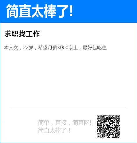 本人女,22岁,希望月薪3000以上,最好包吃住