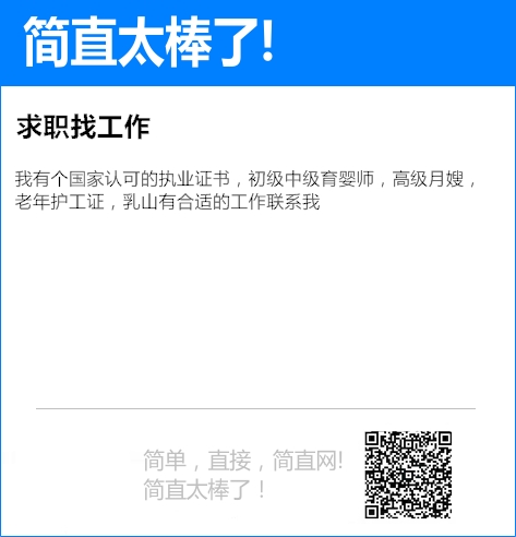 我有个国家认可的执业证书,初级中级育婴师,高级月嫂,老年护工证,乳山有合适的工作联系我