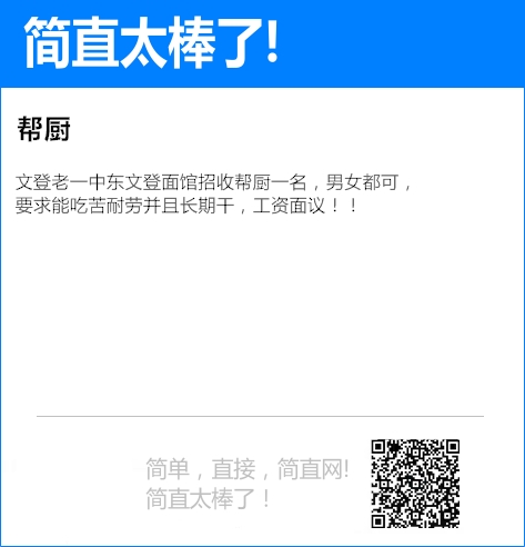 文登老一中东文登面馆招收帮厨一名,男女都可,