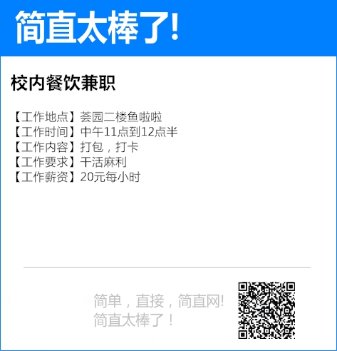扫码或搜索关注微信众号"兼职基地"即可快捷分享本条信息