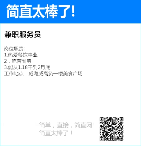 威海兼职基地又称威海兼职网,是威海最大的兼职信息平台,同时提供威海大学生兼职的兼职人才简历库。本站由两大板块组成,其中i兼职版块致力于提供高质量的网上兼职,网络兼职信息如IT兼职,SEO兼职,设计师兼职,翻译兼职,电子商务运营及推广等网络兼职,网上兼职信息。而兼职基地版块则致力于提供威海本地的线下兼职以及大学生兼职实习信息. | Say Hi |