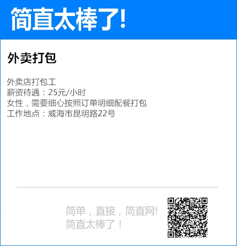 威海兼职基地又称威海兼职网,是威海最大的兼职信息平台,同时提供威海大学生兼职的兼职人才简历库。本站由两大板块组成,其中i兼职版块致力于提供高质量的网上兼职,网络兼职信息如IT兼职,SEO兼职,设计师兼职,翻译兼职,电子商务运营及推广等网络兼职,网上兼职信息。而兼职基地版块则致力于提供威海本地的线下兼职以及大学生兼职实习信息. | Say Hi |