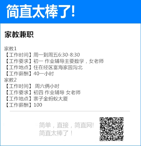 联系雇主时请切记带上本职位的兼职基地ID号 ijianzhi.com/4952(点击复制) 否则雇主不知道您申请的是具体哪个职位。
