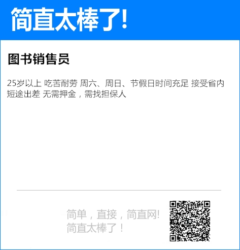 25岁以上 吃苦耐劳 周六、周日、节假日时间充足 接受省内短途出差 无需押金,需找担保人